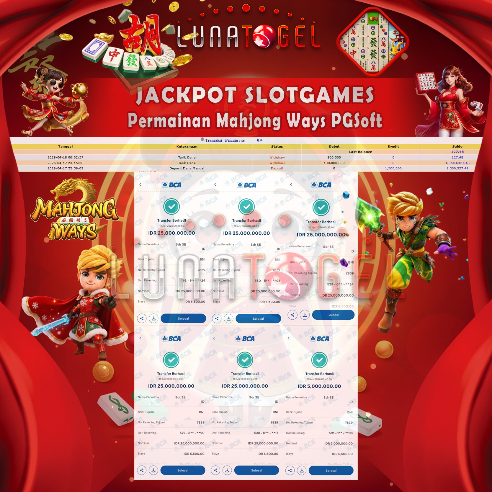 Selamat Kepada User ID : guxxxxxx berhasil Melakukan Withdraw Sebesar Rp.93,200,000,- Meraih Kemenangan Di Permainan Mahjong Ways PGSoft.