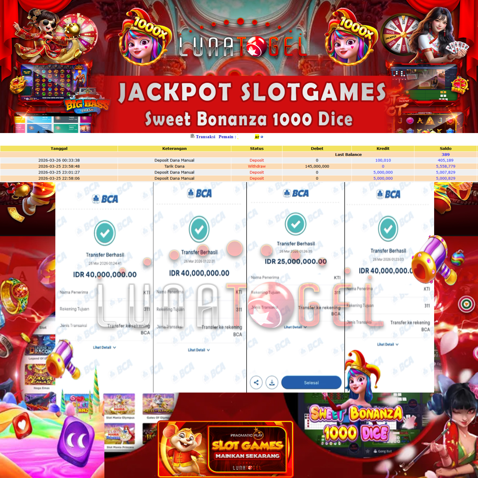 Kini saatnya Anda membuktikan sendiri, raih kemenangan puluhan hingga ratusan juta bersama LUNATOGEL.
