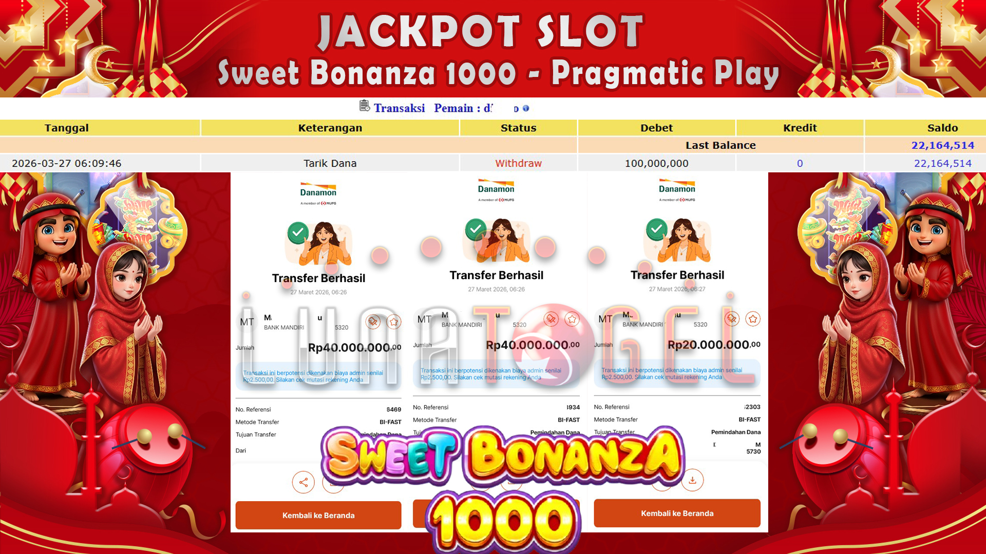 Selamat untuk User ID : dxxxxo berhasil meraih kemenangan besar Rp.100,000,000,,- Di Sweet Bonanza 1000 – Pragmatic Play