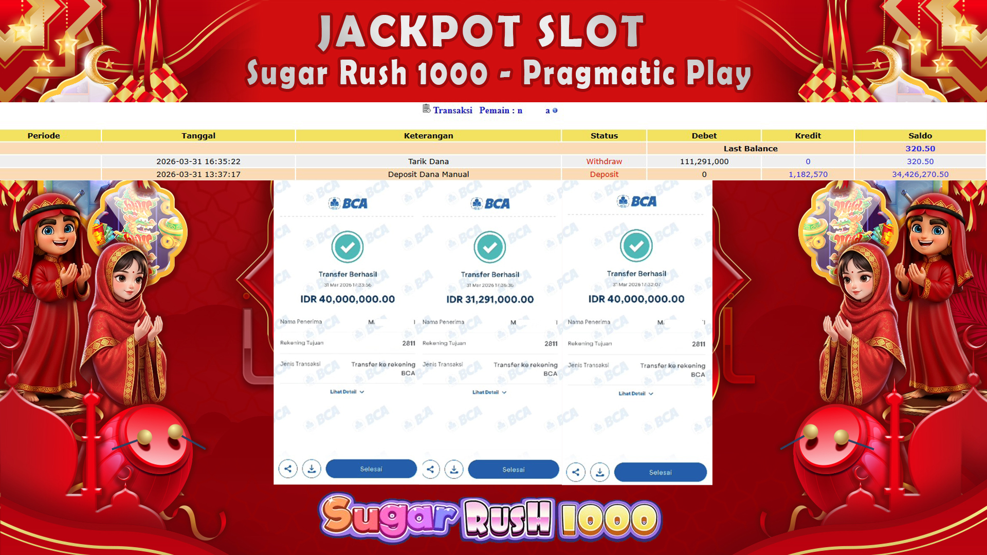 Selamat untuk User ID : nxxxxxa berhasil meraih kemenangan besar Rp.111,291,000,- Di Sugar Rush 1000 – Pragmatic Play
