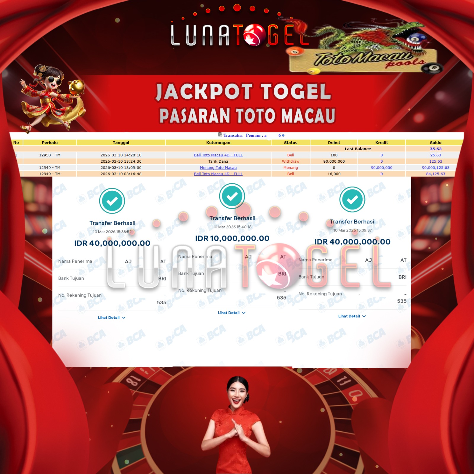 Selamat untuk User ID : axxxxxx6 berhasil meraih kemenangan besar Rp.90,000,000 menang besar pada pasaran togel TOTO MACAU